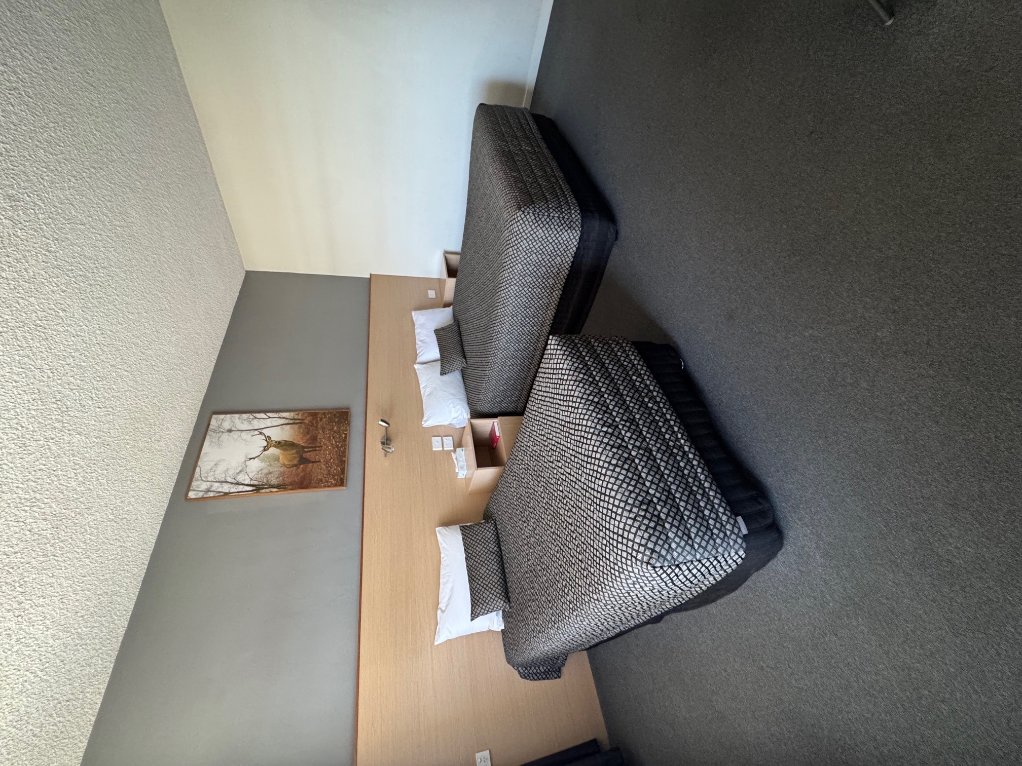 Our modern Twin Room features a comfortable Queen Bed and a Single Bed, perfect for a relaxing stay. The room is equipped with modern facilities, including air conditioning, a smart TV, free Wi-Fi, a work desk, tea and coffee-making amenities, and a private ensuite bathroom with complimentary toiletries. Designed for comfort and convenience, this room provides the ideal space for both leisure and business travellers.